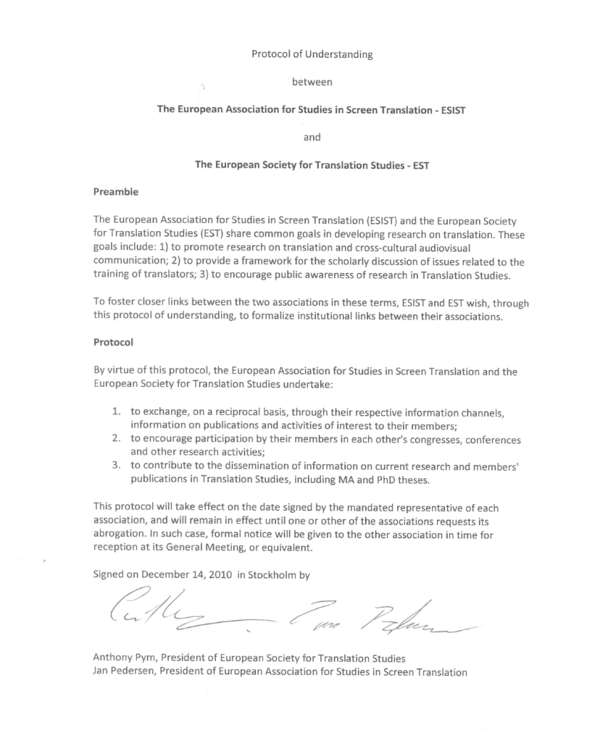 This agreement signed on 14 Dec 2010 aims to encourage the exchange and dissemination of information as well the participation in the activities supported by both associations.